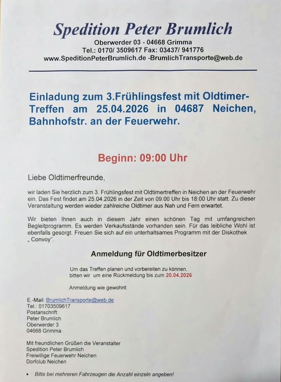 Frühlingsfest mit Oldtimertreffen 04687 Neichen